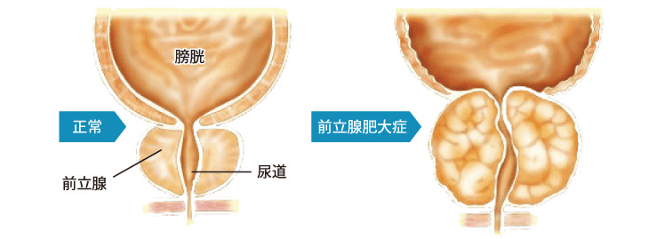 この前立腺が40歳すぎ頃より徐々に大きくなり肥大して、尿道や膀胱を圧迫し尿の通り道を押しつぶしてしまう病気が前立腺肥大症です。